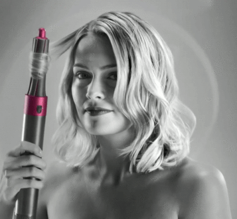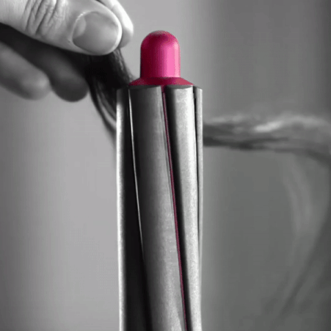 Wenn der Haartrockner Luft ausbläst, erzeugt die Lockendüse einen Coanda-Effekt, der die Haarsträhne mit einer rasanten Geschwindigkeit von 100.000 U/min ansaugt.