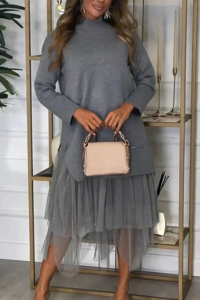 Tauche ein in pure Eleganz mit dem Divinora™ Elegantes Damenkleid mit Mesh-Patchwork. Das fließende Design und die uni Farboptik sorgen für einen stilvollen Look, während die Mesh Patchwork Details einen modernen, femininen Akzent setzen. Perfekt für Tage, an denen du lässige Eleganz möchtest – ganz ohne Aufwand.