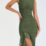 Stil: Bodycon, Midikleid, ärmellos, gerüscht, gefaltet