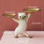 Unser Elegantes Katzentablett hat die Form einer stehenden Katze, die einen goldfarbenen Behälter über dem Kopf trägt.
